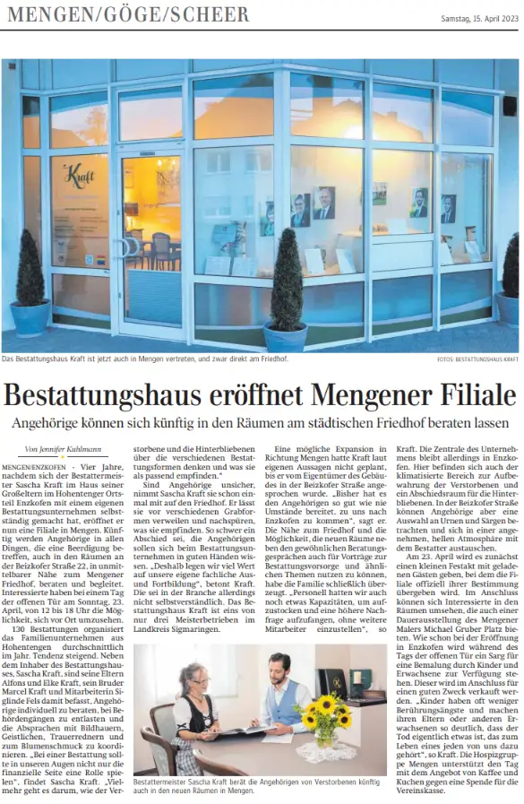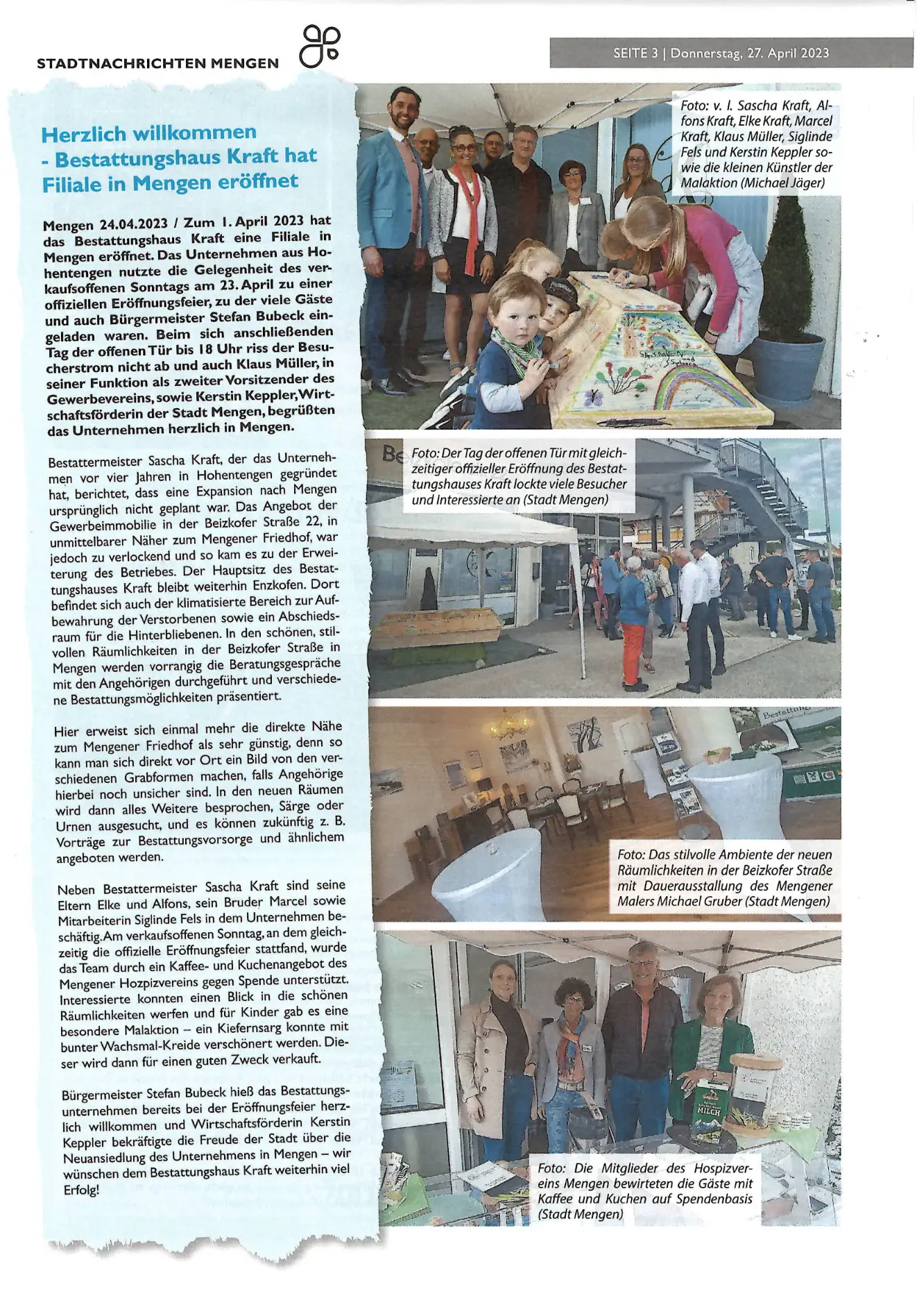 Natürlich finden Sie uns auch in SozialMedia. Über unsere Facebookseite Bestattungshaus Kraft erhalten Sie immer wieder interessante Mitteilungen und Impulse zu verschiedenen Themenfeldern.